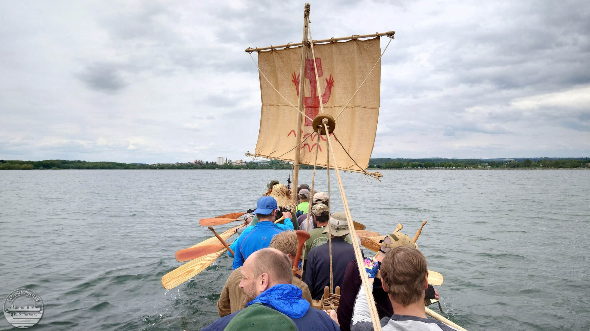 During the testing of the “King of Mochov” on the Lake Rozkos, the average speed, without the use of sail, was measured at about 5 km/h (3.1 mph). When the 20 paddlers made a maximum effort (for about 15 minutes) we managed to reach average speed of about 7.5 km/h (4.7 mph). The boat shows a great stability even with the sail on.